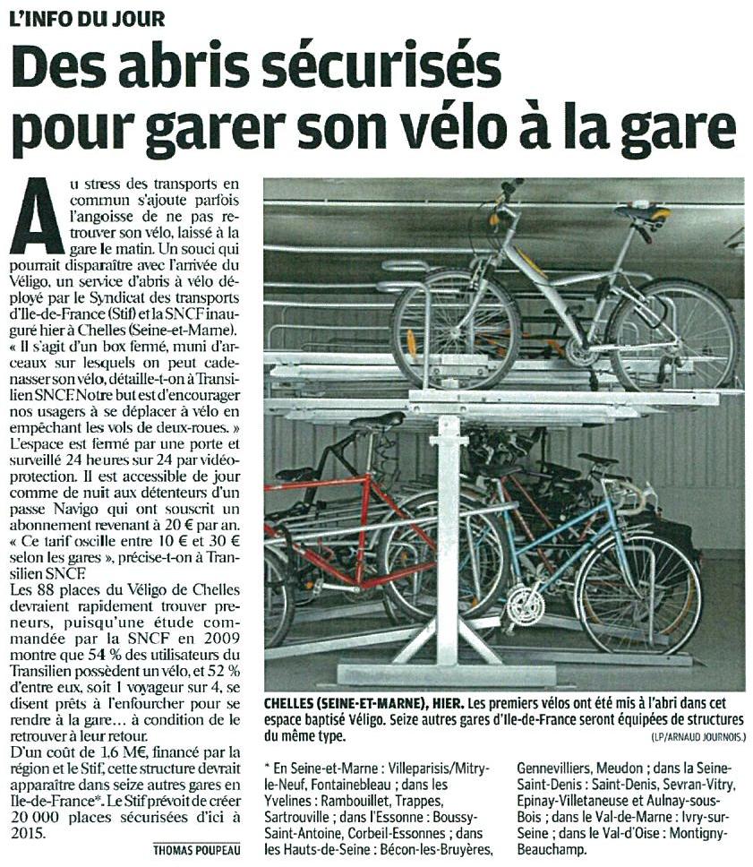 Bonne nouvelle que le développement de ces abris sécurisés pour vélos aux portes des gares RER/SNCF. Bravo à la région Ile de France et au Syndicat des Transports d’Ile de France. Cette première à Chelles devrait être poursuivie dans notre département : Saint Denis, Epinay-sur-Seine, Villetaneuse, Sevran et Aulnay-sous-Bois seront les villes concernées à court terme. Il ne manque plus d’Aubervilliers avec notamment sa gare conjointe avec La Courneuve.