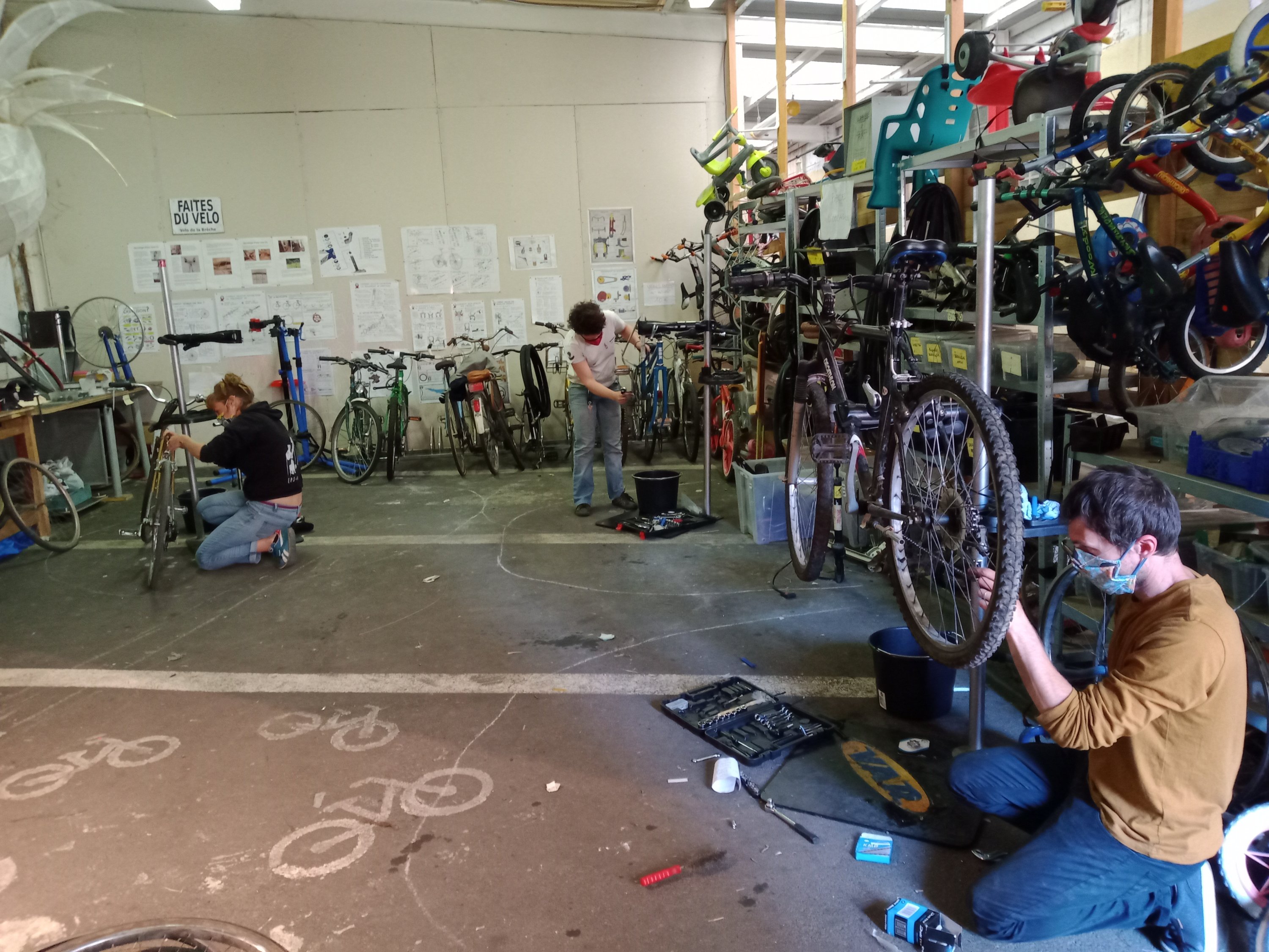 Les auto réparations se font actuellement sur rdv, le dimanche de 14h a 18h, avec un créneau d’une heure par adhérent. Chaque pied de réparation est équipé d’outils qui sont nettoyés après chaque passage