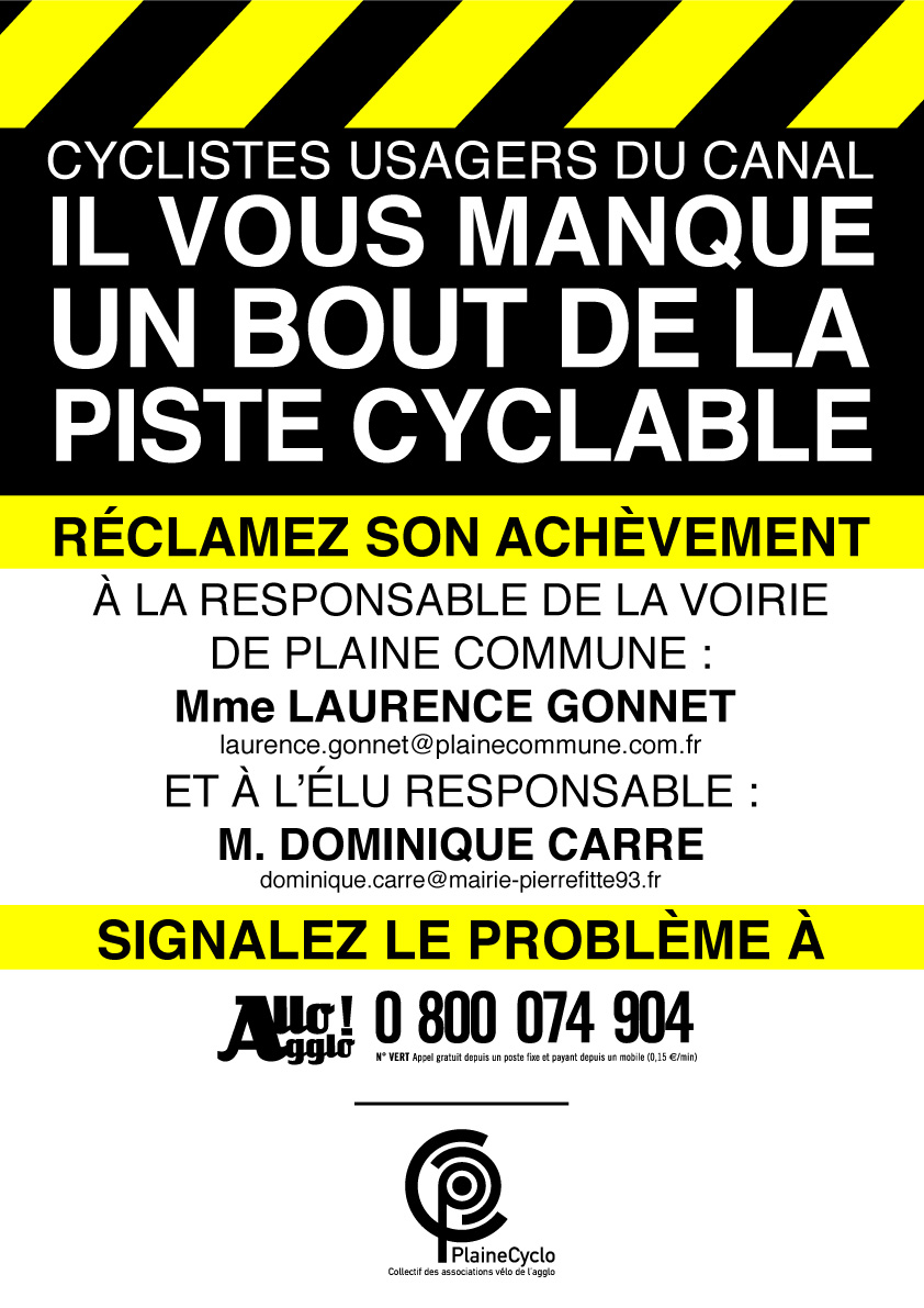 Rendez-vous dimanche 30 novembre à 15 h le long du canal, à Aubervilliers, sous la passerelle Fraternité au niveau du parc Eli Lotar ! Le canal Saint-Denis est un lien essentiel pour les habitants de l’agglomération, tant pour rejoindre Paris loin de la circulation automobile, que pour relier les villes de l’agglomération entre elles (enLire la suite « C’est ce dimanche et on vous y attend à 15h ! »